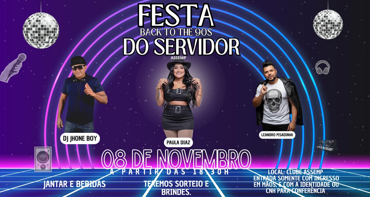 Entre no clima dos anos 90, prepare seu melhor visual e venha celebrar conosco essa grande noite de confraternização e nostalgia na ASSEMP.